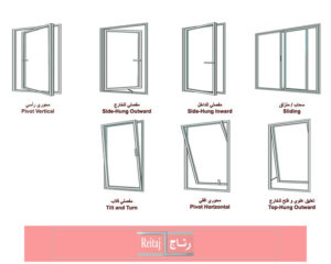 حيث أن  الشبابيك الألوميتال تتعدَّد أنواعها من حيث الحركة و كيفية الفتح و الغلق ، و من أشهر هذه الأنواع :-