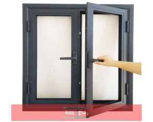 و تتسم بأنه يمكن فتح الشباك من الجهتين بكامل مساحة الشباك ، مما يجعلها توفر مزيدًا من التهوية داخل المنزل . و هى  تأخذ حيزًا من مساحة الغرفة عند فتحها ، لذا فهى غير ملائمة للغرف ذات المساحات الصغيرة .